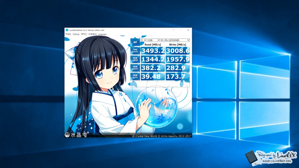 이제 그 성능을 살펴보도록 할까요. 크리스탈디스크마크를 돌려 본 결과입니다. 퍼포먼스 스펙으로 살펴봤던 것처럼 읽기 기준 3,470MB/s 수준의 엄청난 결과를 확인할 수가 있었습니다. ▼