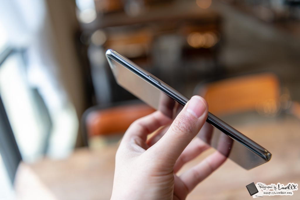 측면부 말을 해서 좀 더 짚어 보면.. 프레임 처리가 다른 것도 눈에 들어오네요. 기존 것들은 그냥 일자였는데 5G 모델은 버튼부만 두껍고 다른 곳은 얇게 처리가 된 걸 볼 수 있습니다.