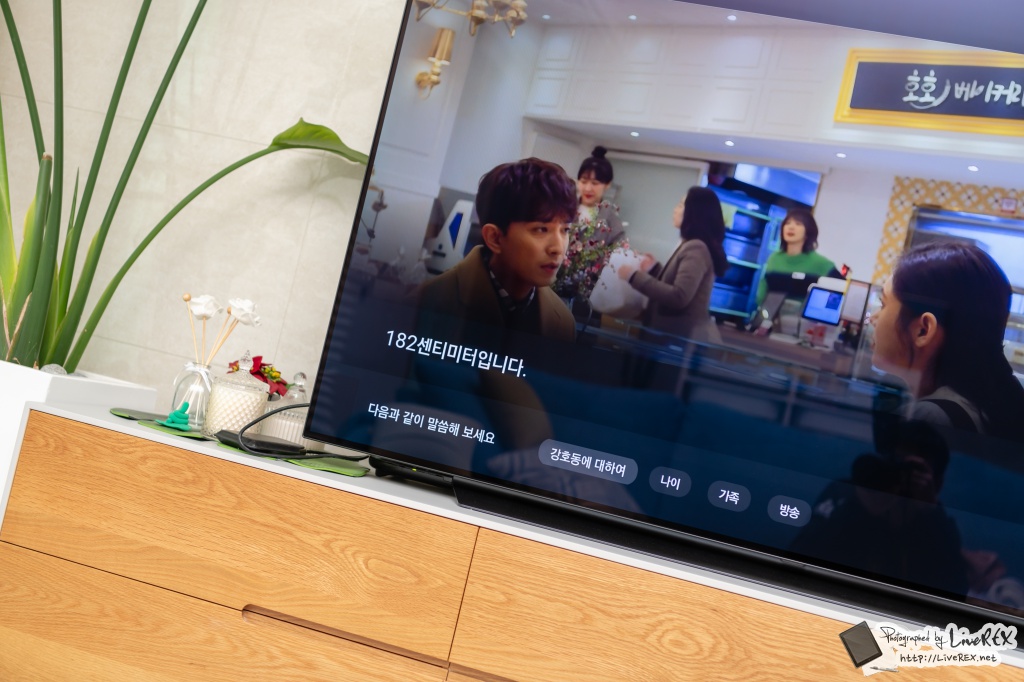 예를 들자면, “강호동이 몇 살이지?”라고 질문한 후, “키는?”라며 연이어 물어보면, 용케 강호동의 키를 알려줍니다. 참고로 인공지능 홈보드와 음성 명령 기능은 해외 직구 TV의 경우 지원되지 않는 기능이라고 합니다.