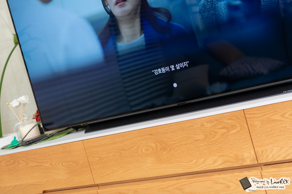 ‘2세대 인공지능 알파9(α9)’이 최적의 사운드까지 스스로 알아서 제공한다고 말씀 드렸었는데요. 사운드 부분에 있어서는 무려 1,750만개 이상의 영상의 사운드 데이터를 학습하였기 때문에 가능한 기술이라고 합니다. 먼저 2채널의 음원을 별도의 스피커나 스피커바가 없어도 5.1 서라운드 음향으로 즐길 수 있게 바꿔줍니다. 또한 리모컨의 위치를 향해 사운드 방향을 조절하여, 사용자가 한층 더 업그레이드 된 입체 음향을 느낄 수 있도록 해줍니다.