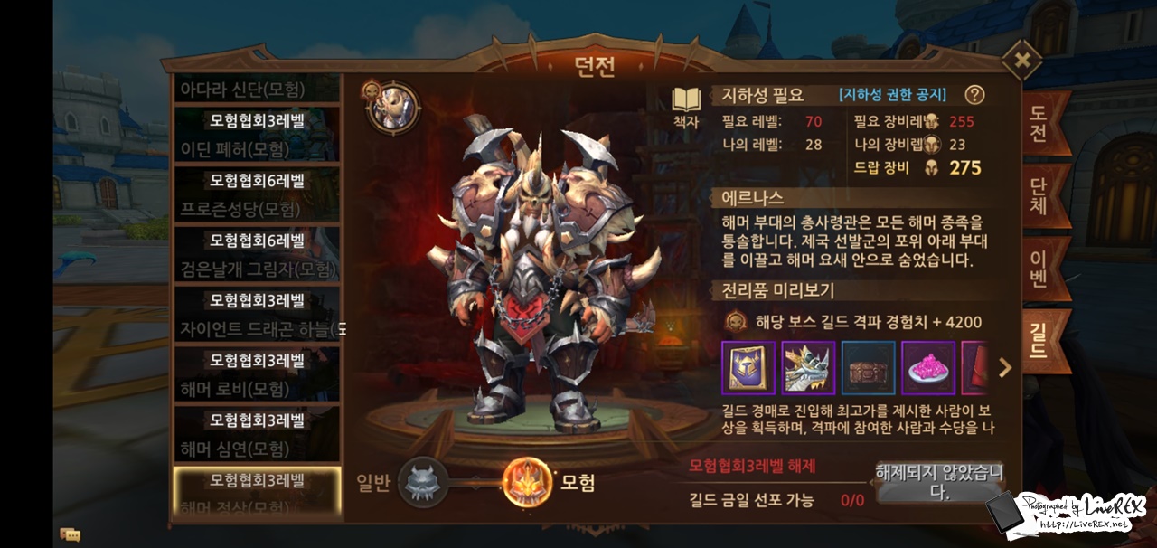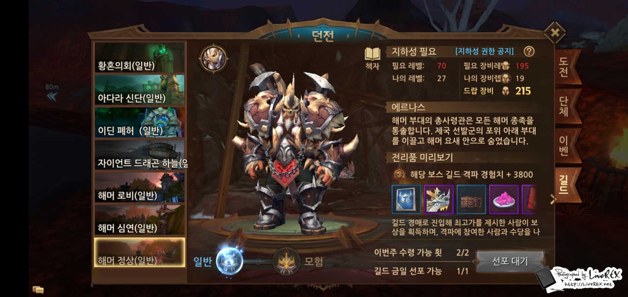 길드에 가입되어 있다면 '길드 지하성'도 추천할 만한 콘텐츠라 하겠습니다. 업데이트 후 드래곤의 하늘(모험), 해머 로비(모험), 해머 심연(모험), 해머 정상(모험)이 새롭게 더해졌는데요.
