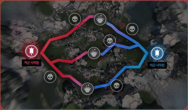 맵에 존재하는 총3개의 용화로를 점령 시, 초당 점령 점수를 획득할 수 있으며, 점령한 용화로가 많을 수록 더 많은 점수를 획득할 수 있습니다. · 상대 진영을 처치할 경우, 10점의 점수 획득이 가능합니다. (점수 차감은 없습니다.) · 용오름 계곡 시작 후, 마지막에 등장하는 보스 몬스터 처치 시 100점의 점수 획득이 가능합니다.