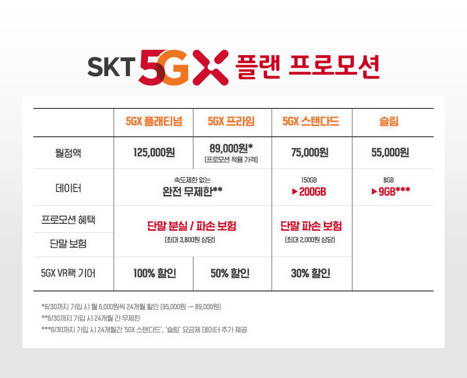 물론, 기존에서 SK텔레콤은 6월 31일까지 5GX 플랜 프로모션을 진행한 바 있죠? 요금 할인부터 여러 선물까지 지급을 하는 등 많은 혜택을 제공했는데.. 여기에 좀 더 더해진 내용들이 있습니다. 다시 말해 업그레이드 된 혜택이 들어갔다고 이해를 하시면 될 것 같네요.