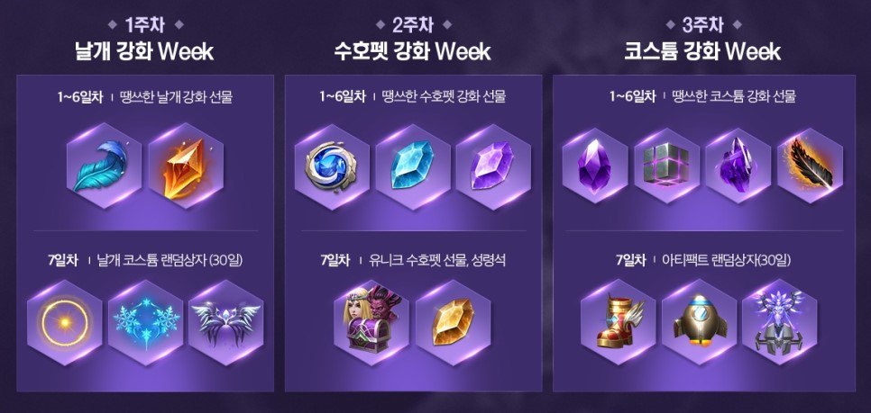 뿐만 아니라, 전체 유저에게 1주년 코스튬 박스와 1주년 출석체크 보상이 있으니 이런 것들도 꼭 체크해서 받아가세요.