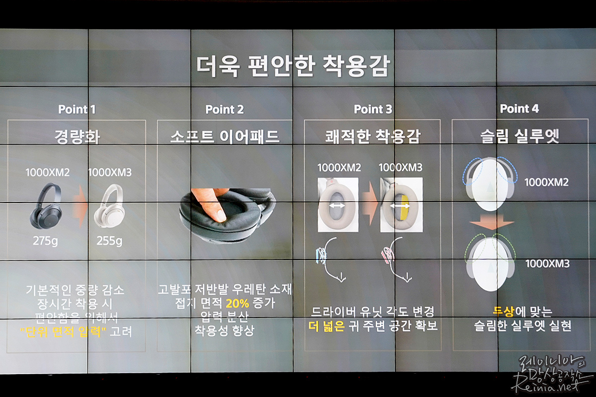 재질이 변한 부분에 대해서는 아쉬운 마음이 크지만, 착용감의 변화가 꽤 긍정적으로 체감되었다 하네요. 참고로, 소니는 드라이버 유닛 각도 변경을 포함해 기본적인 중량을 감소시키는 등의 변화로 해당 모델을 발표할 무렵부터 착용감에 대해 강조를 한 바 있는데요.