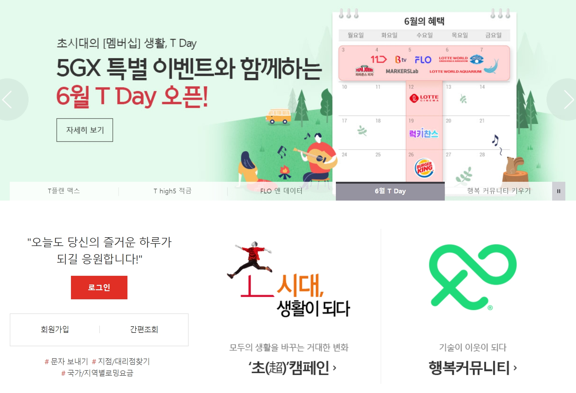 달력에 알파벳 T를 그린 것과 같은.. 형태로 각 날짜에 맞춰 여러가지 혜택이 주어지는 걸 두고 'T데이'라 부르는 건데요.