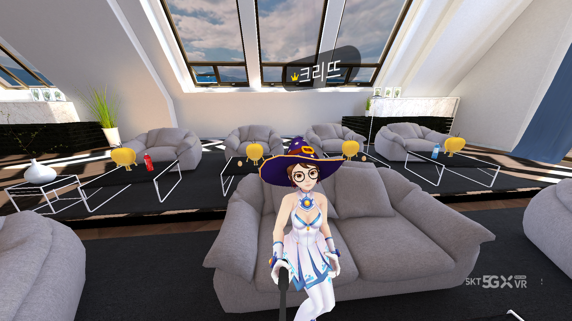 이렇듯 VR룸에 들어가면 실제 방처럼 꾸며진 공간이 나오는데요. 바로 이 가상공간에서 다양한 즐길거리를 경험할 수 있습니다.