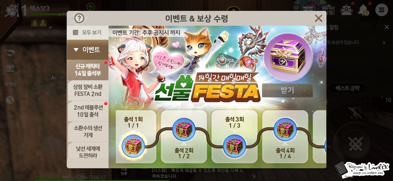 신규 유저 경우 꽤 혜자급 혜택을 누릴 수 있는데요. 14일 동안 매일 특별한 아이템을 얻어갈 수가 있습니다. 빠른 성장에 도움이 되는 +7 강화된 공격형 희귀 장비, 상급 보석함, 빛나는 무기, 장신구 강화석까지. 듣기만 해도 엄청나죠?