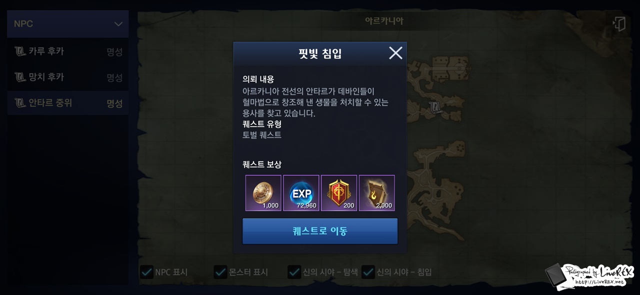 또, 임무에서 가이드 퀘스트를 적극 활용하는 것도 좋습니다. 서사 등급의 무기, 반지, 대천사의 날개까지 획득이 가능하거든요. 그러니 이 또한 체크하면서 플레이를 하는게 좋겠네요. ▼