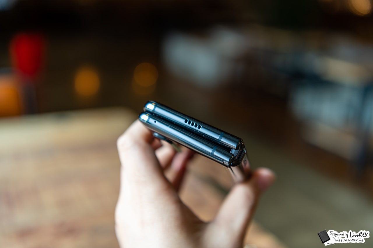 외형을 좀 더 짚어보면.. 갤럭시 폴드 상단에는 스피커, 하단에는 USB 타입C 및 스테레오 스피커의 나머지가 자리하고 있네요. ▼
