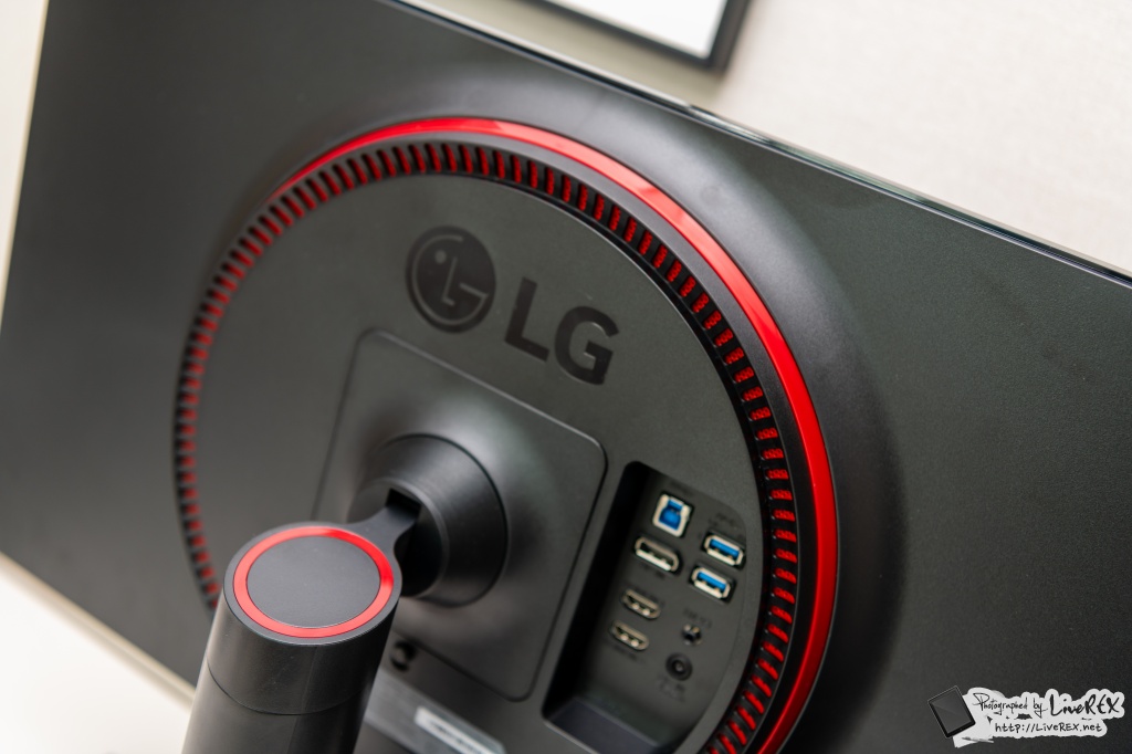 LG 울트라기어 게이밍 모니터 27GL850의 외관부터 살펴볼까요. LG 게이밍 모니터 특유의 컬러 조합이 바로 눈에 띕니다. 강렬한 레드가 포인트를 딱! ▼
