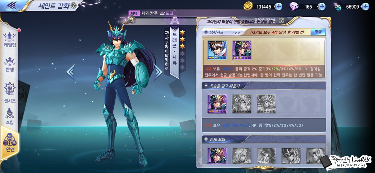 당연히 각각의 세인트 역시 강화가 가능한데요. 새로운 스킬을 개방하려면 '각성'을 해야 합니다. 7단계로 이뤄진 '세븐센시즈'를 완성하면 개방되는 방식인데요. ▼