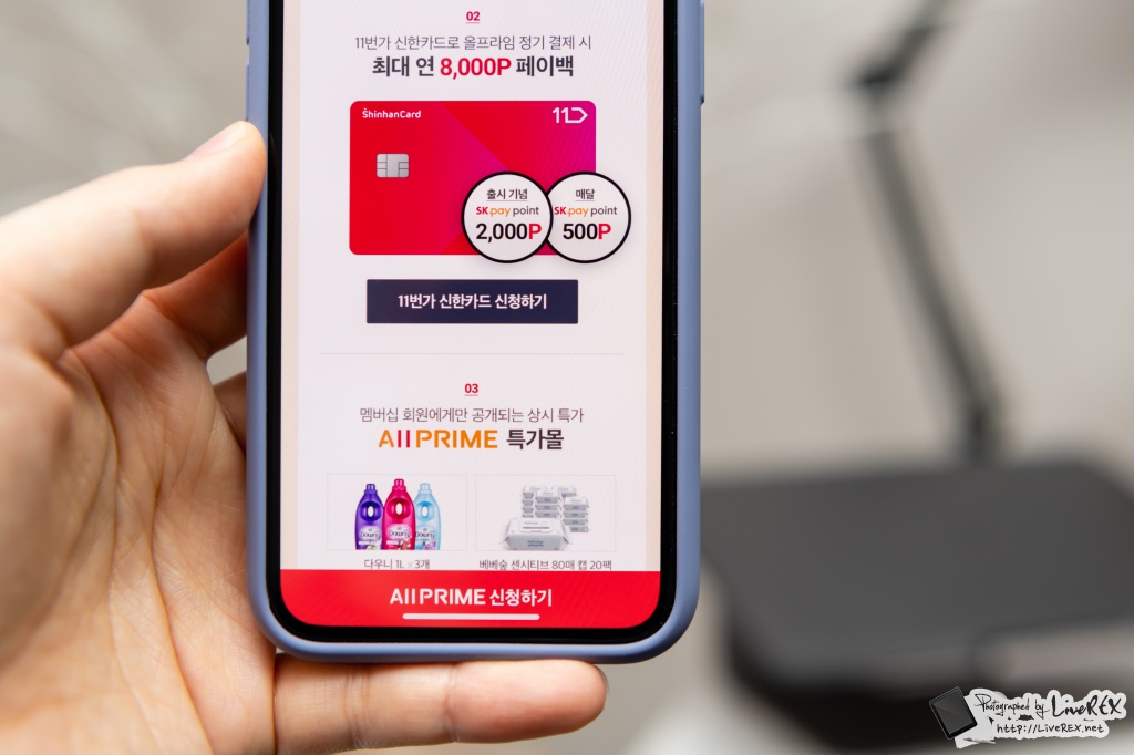 끝으로, 제휴카드 혜택도 있어요. 올프라임 월 이용료를 ‘11번가 신한카드’로 결제하면 12개월간 SK pay 포인트를 매달 500포인트씩 총 6천 포인트를 적립 받을 수 있습니다. ▼