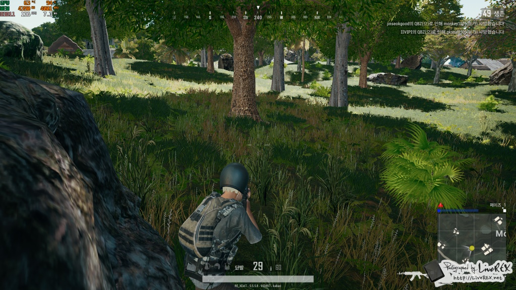 실제로 게임을 플레이 할 때는 어땠을까요? 1080p 해상도와 국민옵션을 기준으로 배그를 플레이 했을 때 110~120 프레임 이상은 꾸준히 찍어주는 걸 볼 수 있었습니다. ▼