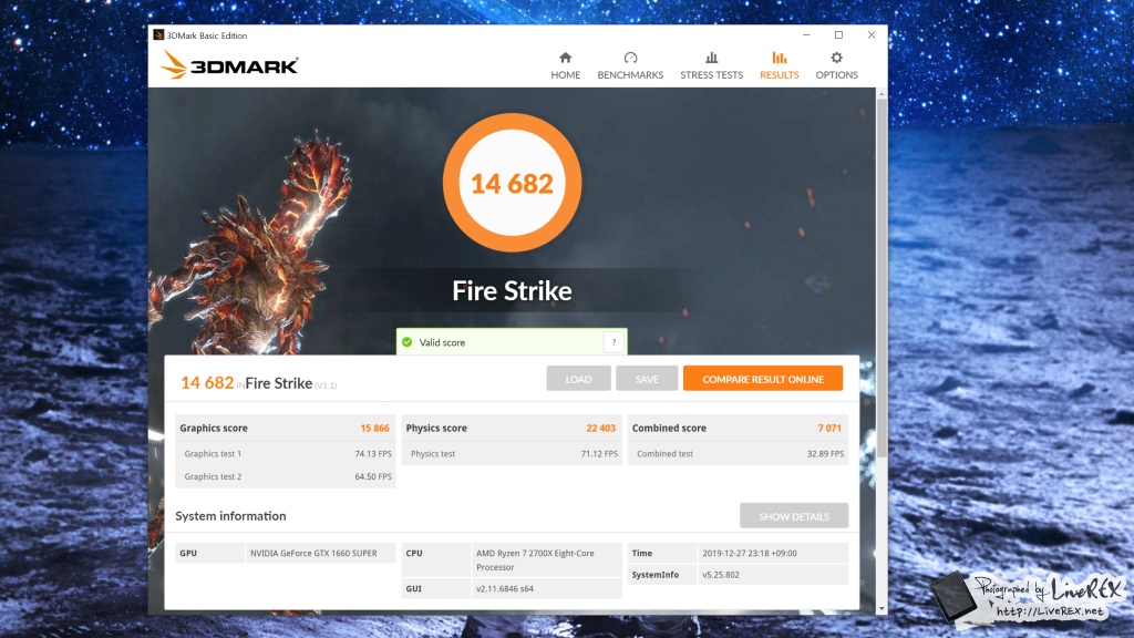 성능을 고려할 때 주로 이용하는 3DMark 벤치마크를 진행해 봤는데요. 파스 기준으로 그래픽 점수는 15866점이 나왔고, 타임스파이는 총점 기준 6483점(그래픽 점수 6161점)이 나온 걸 확인할 수 있었습니다. ▼