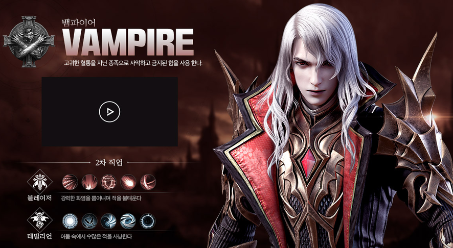 R5(알파이브)에서 선택할 수 있는 직업은 6개가 있는데요. 뱀파이어, 로그, 거너, 위자드, 미니스터, 나이트이며, 이 직업들은 2차 전직 후 총 12개의 클래스로 즐길 수 있습니다.