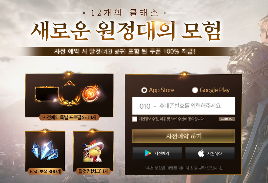 < 사전예약 / 구글 플레이 / 앱스토어 / 공식카페 >