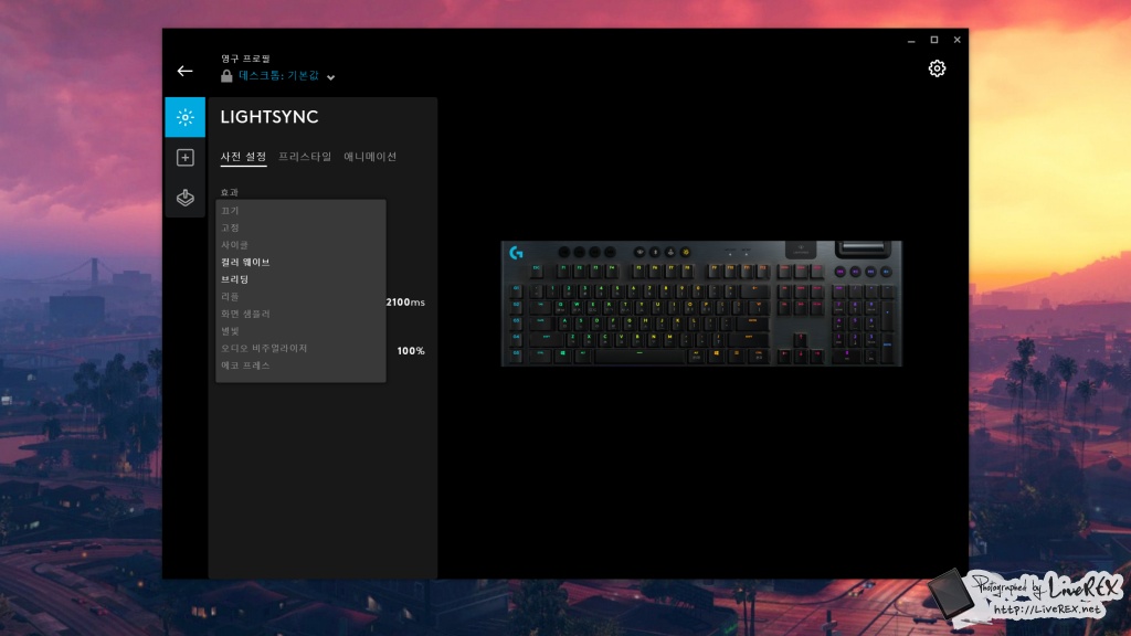 앞서, RGB 조명 그리고 이를 통한 감성에 대해 언급을 했습니다. 로지텍 제품은 전용 툴. 즉, 'G HUB' 소프트웨어를 통해 다양한 효과를 원하는대로 적용할 수 있어요. ▼