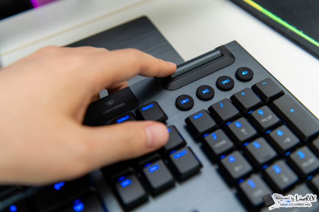 지난 글에서도 소개했듯, G913 모델은 미디어 관련 좀 더 편리함을 갖는 특징도 있어요. 음량을 빠르게 조절할 수 있는 휠 등이 대표적인데요. 이 또한 필요에 따라 바로바로 볼륨 등을 조절할 수 있어 좋더군요. ▼