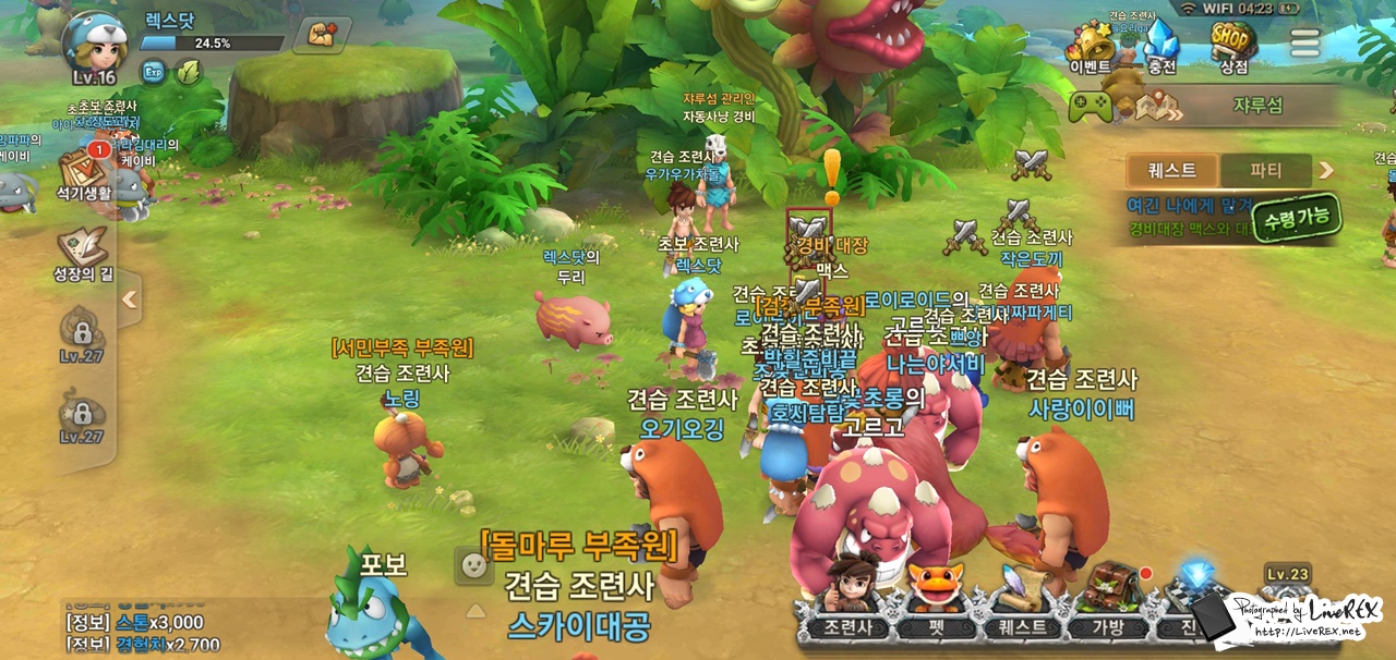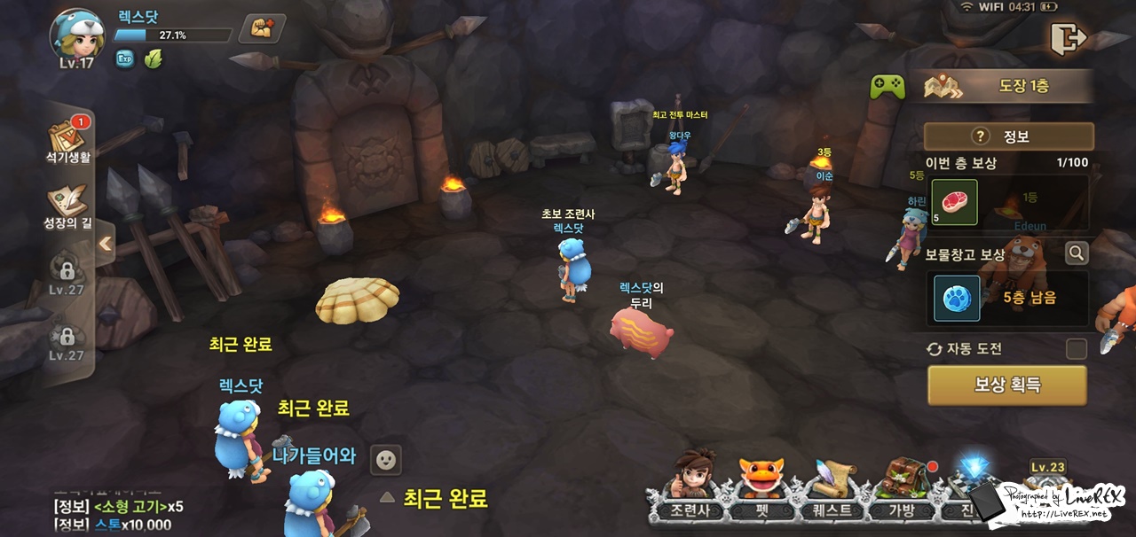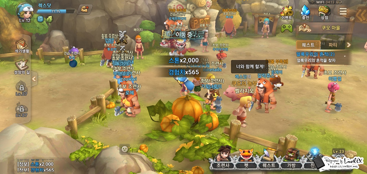 참고로, 스톤에이지 월드는 퀘스트 기반의 진행 외에도 다양한 콘텐츠가 녹아 있습니다. 레벨이 올라갈수록 즐길거리가 많아지는데요. 이 덕분에 시간이 지나도 루즈해지거나 하는 것 없이 재미를 느낄 수 있더군요.