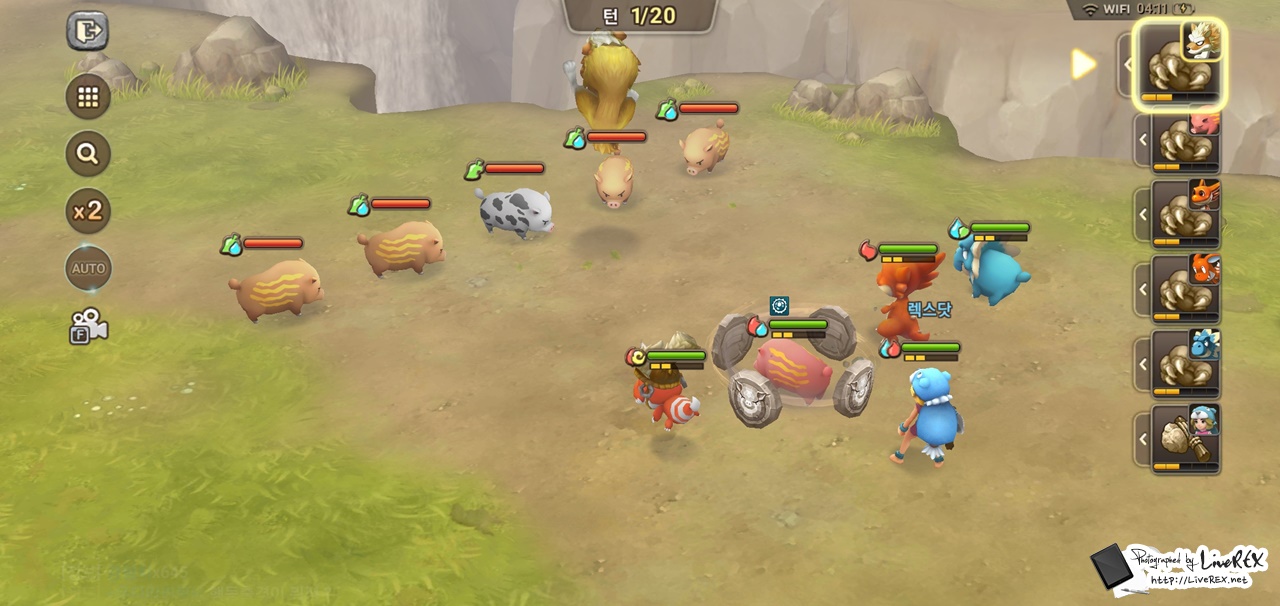 아래 보이는 장면들이 바로 스톤에이지 월드에서의 전투 모습입니다. 턴제 방식으로 진행하는데요. 초반에는 큰 어려움 없이 승리를 챙길 수 있을텐데, 당연히 시간이 지날 수록 공격시 공격 목표를 집중한다든지 스킬 등을 상성에 맞춰 사용하는 것 같은 전략적인 운영이 필요합니다.