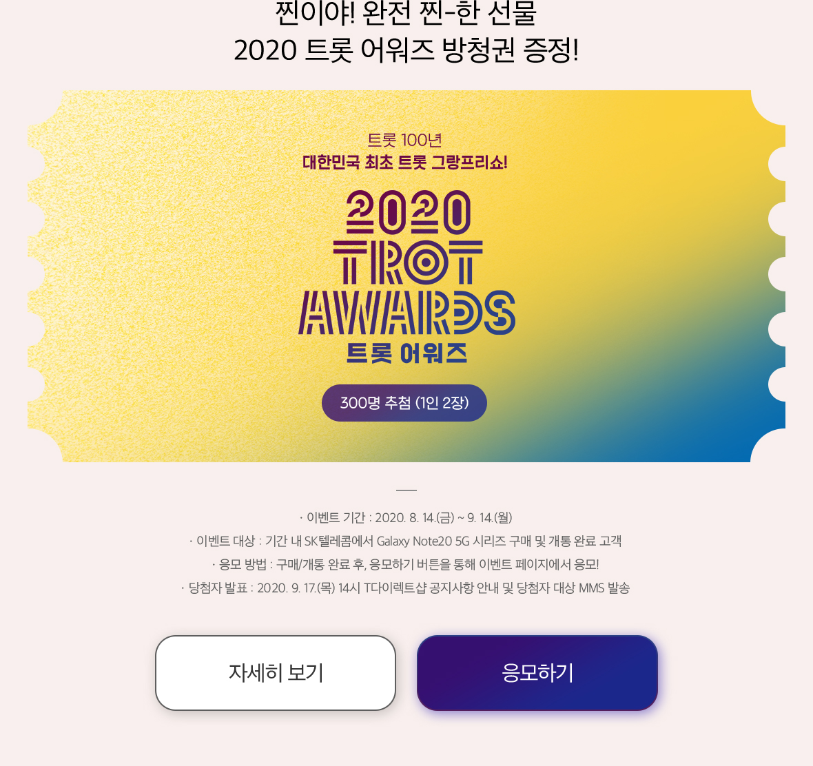 갤럭시노트20 티다 구매 혜택, 2020 트롯 어워즈 방청권?!