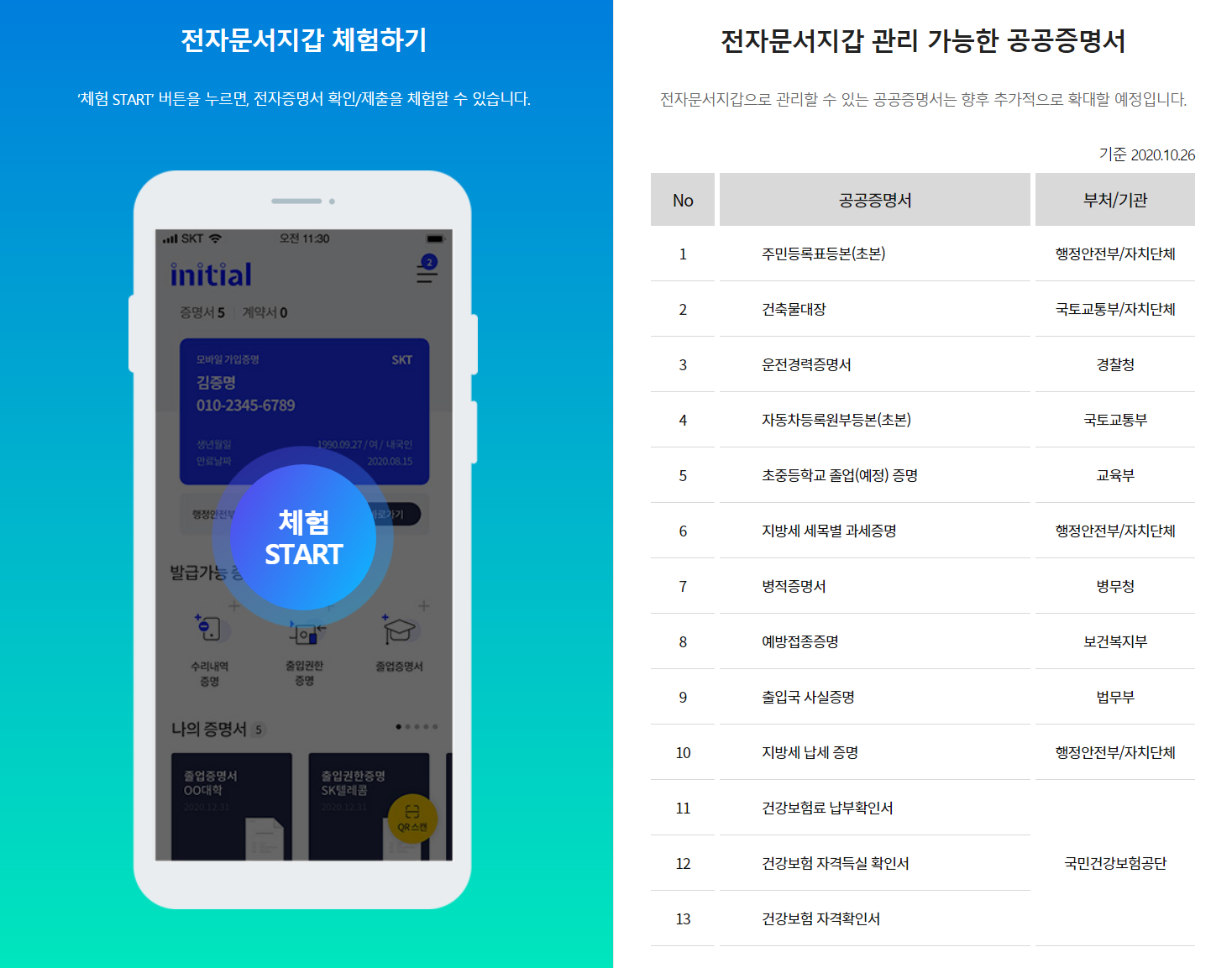 이니셜 앱 전자문서지갑, 주민등록등본 등 발급 및 제출 쉬워진다!