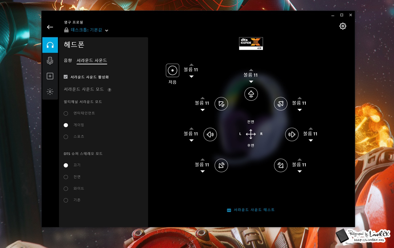 그렇다면 음질은 어떨까요? 로지텍 G733 은 PRO-G 40mm 드라이버, DTS HeadPhone:X 2.0 7.1 서라운드 시스템 등이 탑재되어 있어서 이 부분에 대한 걱정도 지워낼 수 있습니다. 이는 실제로 게임을 플레이하면서도 어렵지 않게 체감할 수 있었는데요.