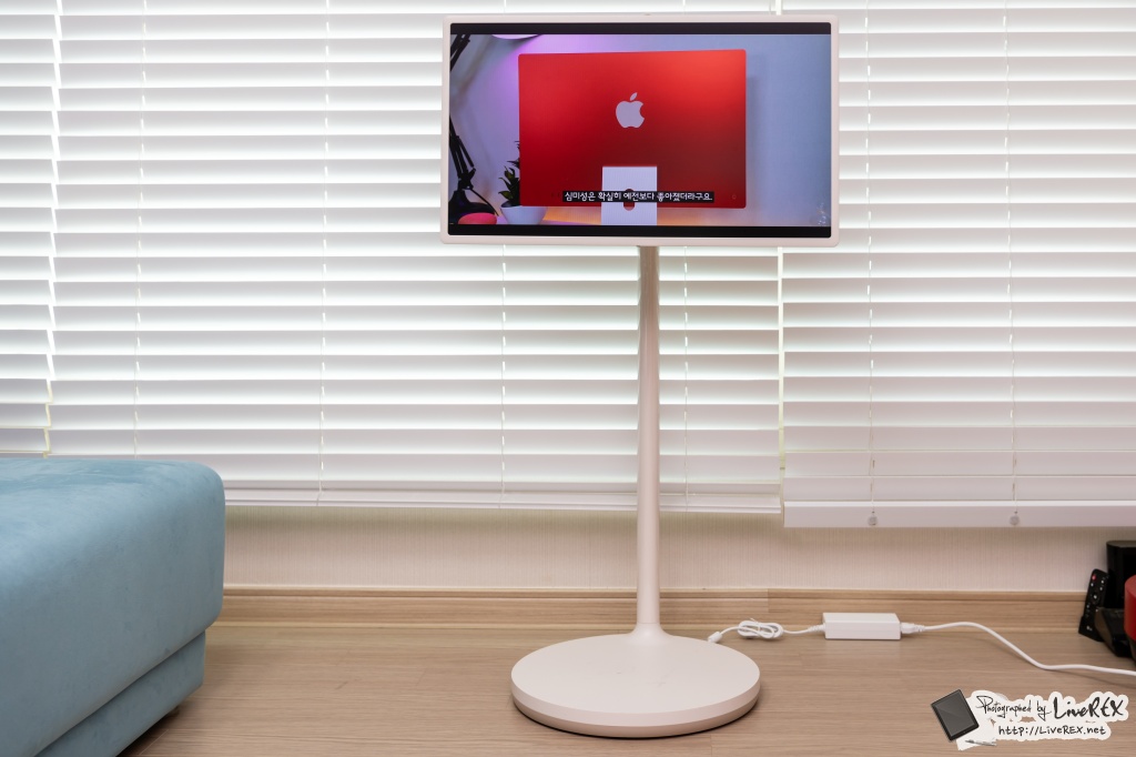 특히, 하단 거치대 부분에 어댑터를 연결해서 이용할 수도 있지만 이를 통해 충전을 한 후 최대 3시간 정도는 무선으로 활용도 가능하다 보니 그 편리함이 더 크게 체감되더군요. 하단 거치대 바닥면에 있는 바퀴 덕분에 이동이 편한 것도 긍정적인 체감에 영향을 줬구요.