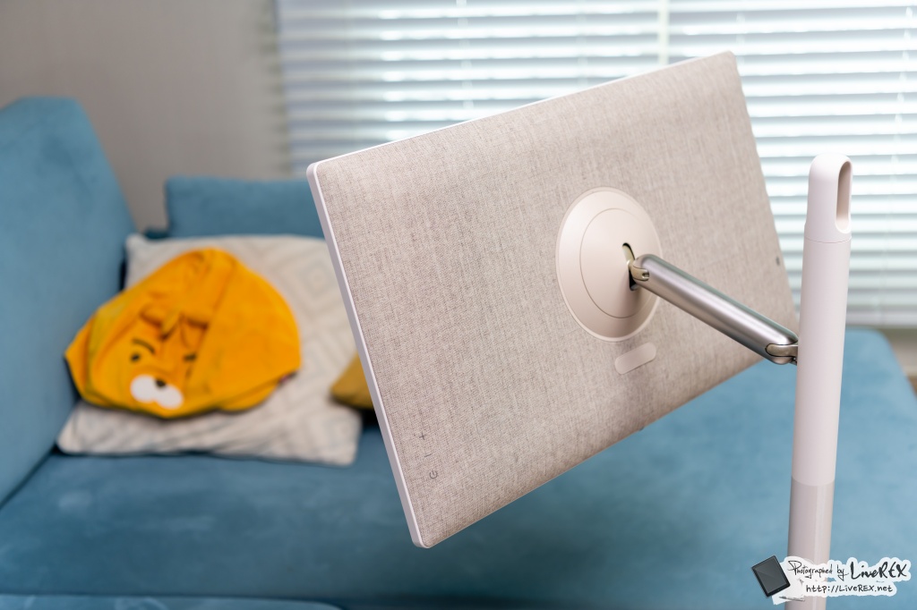 이전 프리뷰 성격의 글에서도 언급했듯이 LG 스탠바이미는 디자인부터 상당히 깔끔하고 세련된 느낌을 보여주고 있습니다. 뒷면의 패브릭 소재 마감은 따뜻한 감성에 더해 고급스러운 인상마저 전하고 있네요.