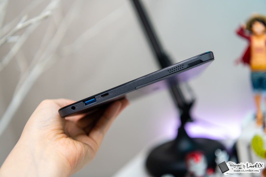 USB A포트, 마이크로 USB 5핀 포트, 3.5mm 오디오 단자, 마이크로 HDMI 포트 등이 자리하고 있는데요. 최근 흐름을 봤을 때 USB 타입C를 지원하지 않는 점은 아쉬움이 남네요. 참고로, 마이크로 5핀 포트를 통해 충전도 가능합니다.