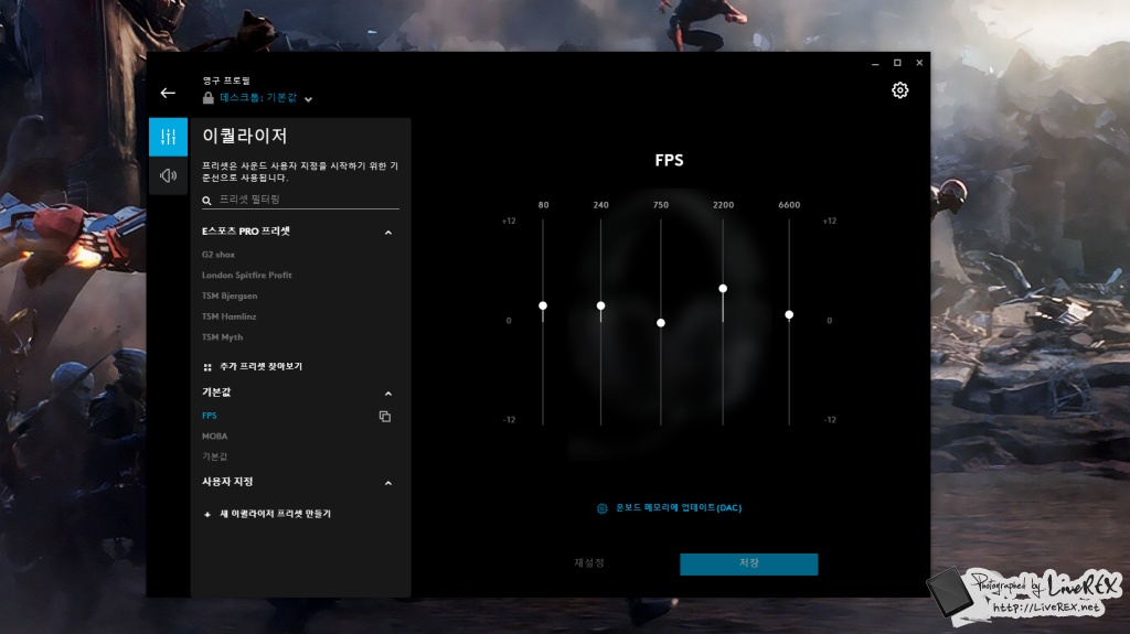 덧붙여, 전에도 말한 것처럼 G HUB에서는 프로게이머들이 설정한 오디오 EQ 프로필을 다운로드해서 설정할 수 있고, 다운받은 프로필에서 본인 취향에 맞게 살짝 조절도 가능해서 간편하게 자신에게 맞는, 동시에 게임에 꼭 어울리는 사운드를 즐길 수 있습니다. ▼