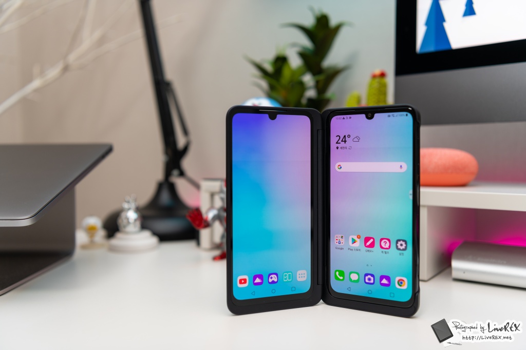 듀얼 스크린을 펼쳐보면, 기존과 달리 V50S와 듀얼스크린의 화면부가 꽤 통일감 있게 처리된 걸 알 수가 있습니다. ▼