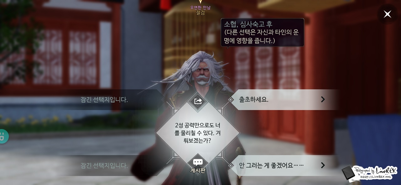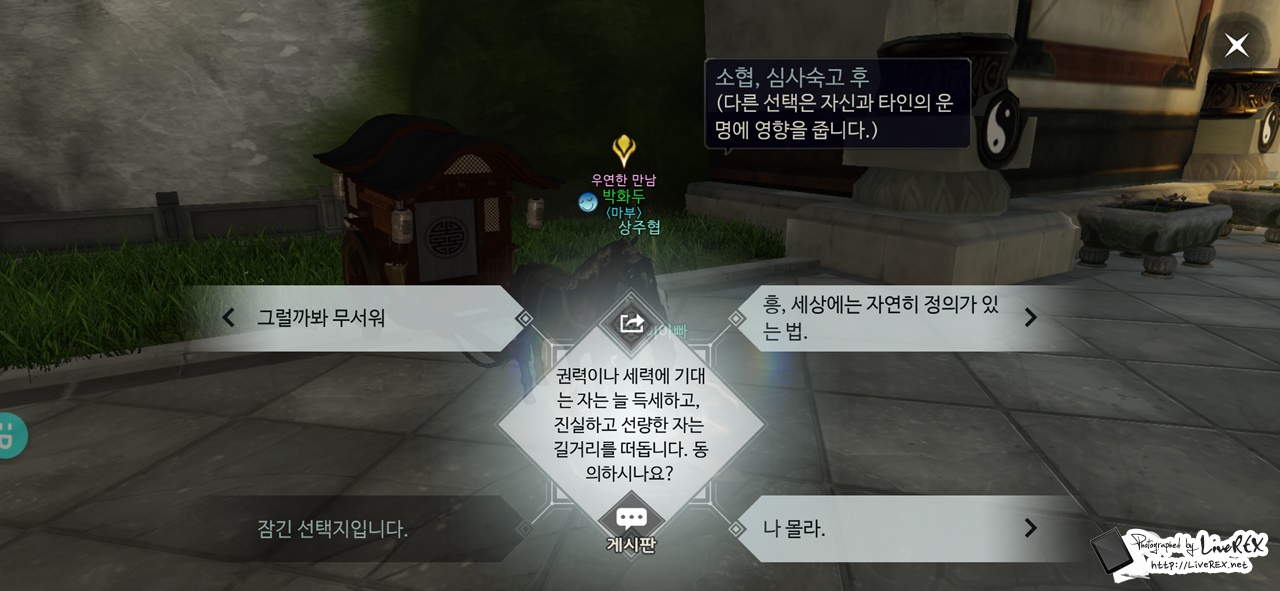 액션키를 통해 콘솔 게임 같은 묘미를 경험할 수 있는 부분이라던지, 퀘스트 진행 간 이용자의 선택에 따라 스토리가 달라지는 멀티 엔딩, 3단 경공과 협동 경공 등 기존 무협 작품에서 볼 수 없었던 것들이 주는 즐거움이 꽤 컸습니다.