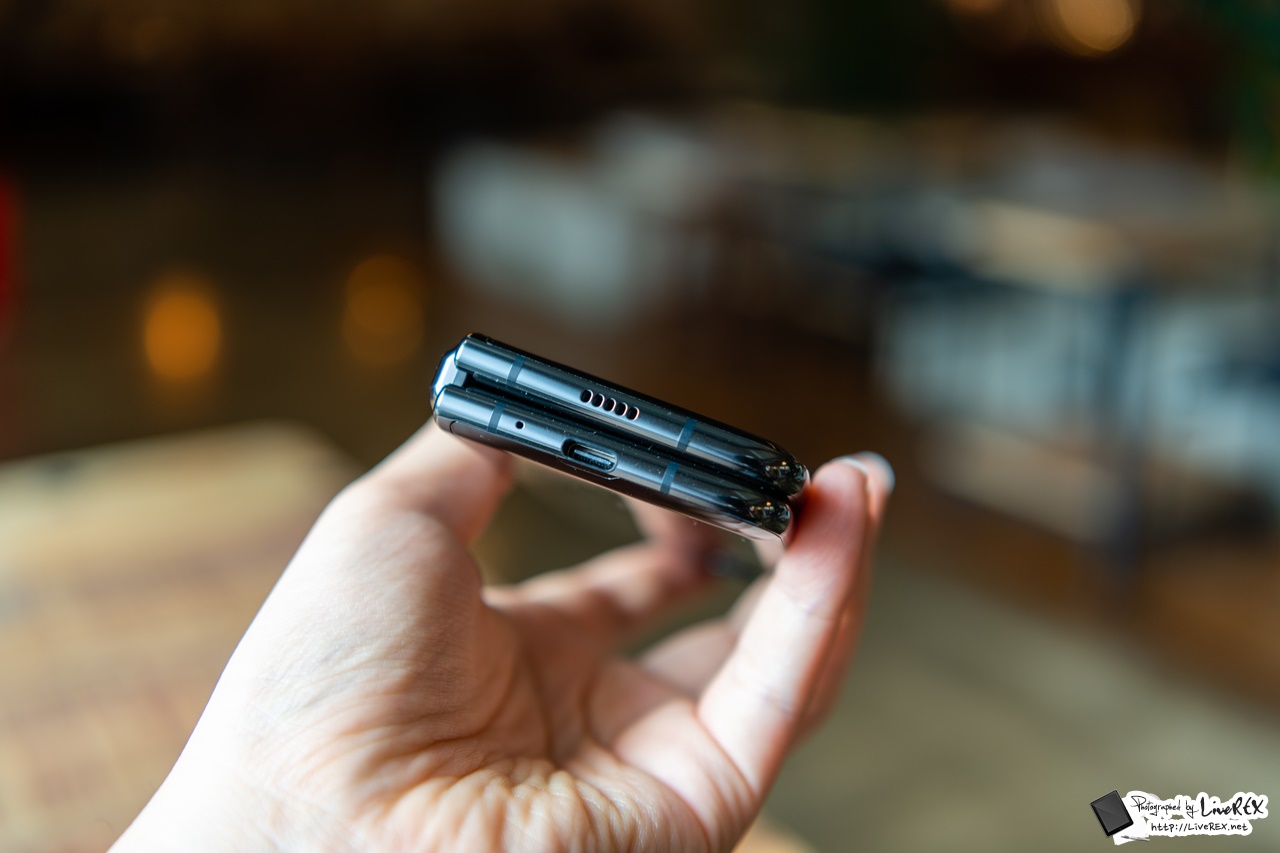 외형을 좀 더 짚어보면.. 갤럭시 폴드 상단에는 스피커, 하단에는 USB 타입C 및 스테레오 스피커의 나머지가 자리하고 있네요. ▼