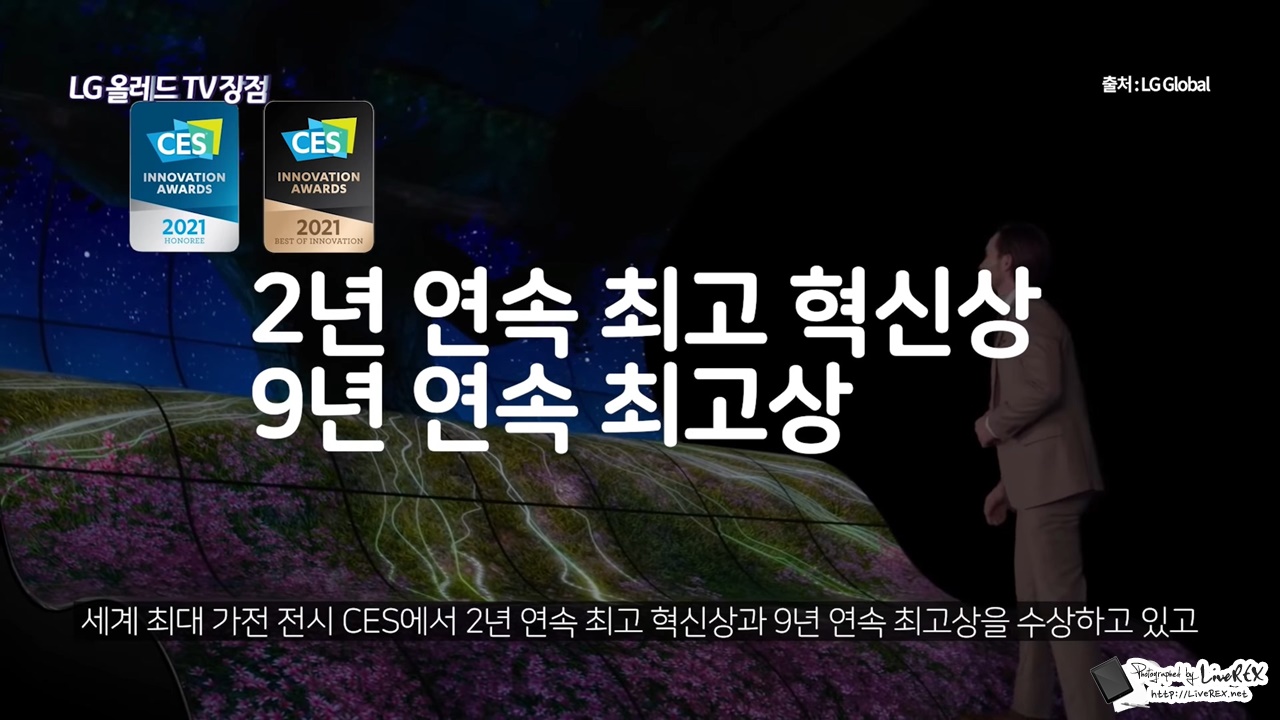 LG 올레드 TV의 화질과 디자은 이미 전세계적으로 인정을 받고 있습니다. 세계 최대 가전 전시 박람회인 CES 에서 7년 연속 최고 TV에 선정(엔가젯 기준)된 것은 물론 영상 음향 전문가 협회 ELSA어워드 9년 연속 최고 제품상, 세계 3대 디자인상 IDEA 2019 Gold, iF 디자인 2020 Winner, 레드닷 2020 Best of the Best를 수상하였으며, TV 예술과학 아카데미 선정 美 에미상 기술공학 에미상 등 권위있는 매체 및 전문가에게 인정받은 건 기본이고,