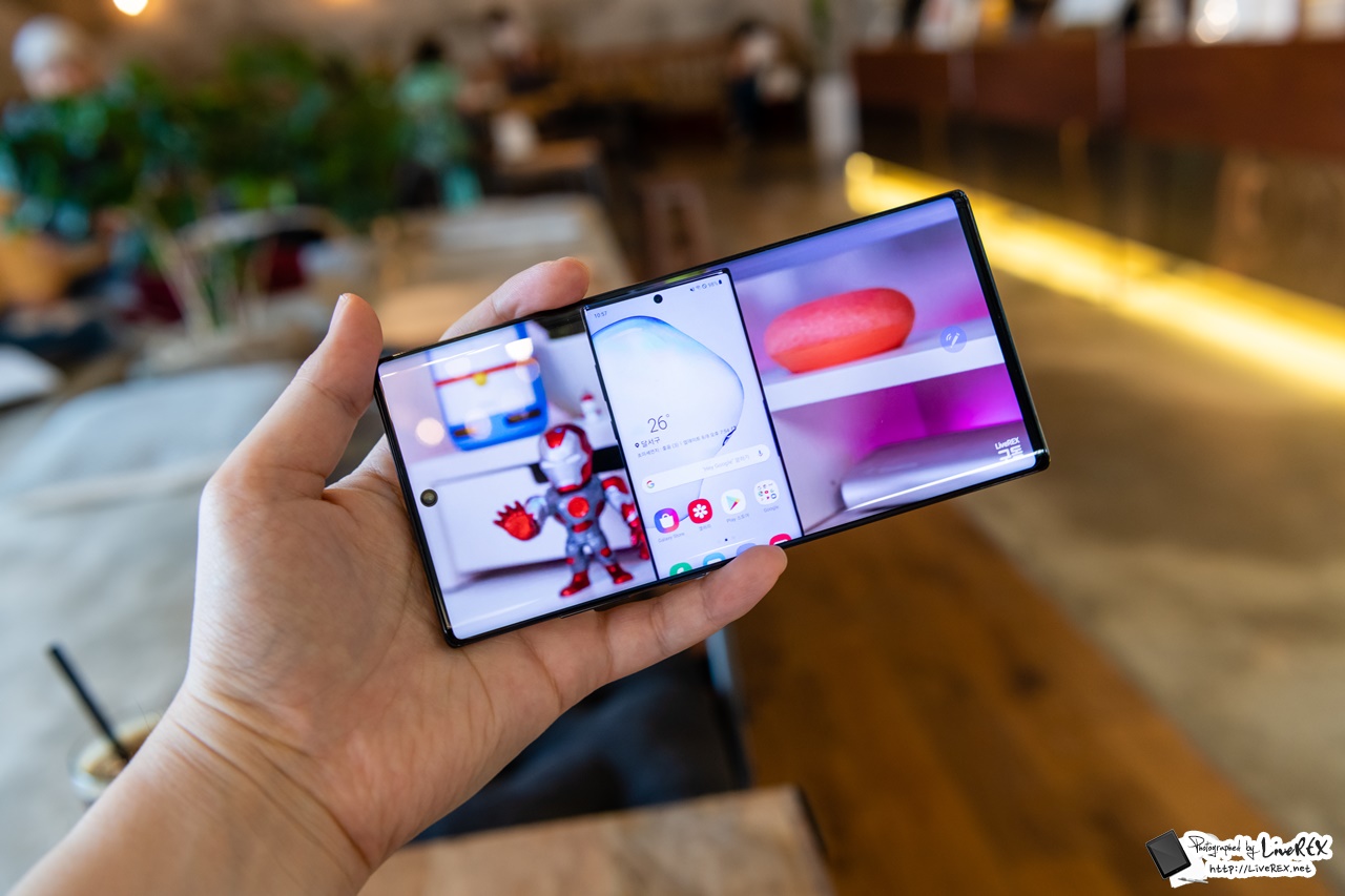 그런데, 갤럭시 노트10+는 6.8인치 디스플레이를 기반(참고, 기본 갤럭시노트10은 6.3인치)으로 하지만, 그 크기가 한 손으로 쥐거나 하는데 전혀 부담이 되지 않습니다. ▼