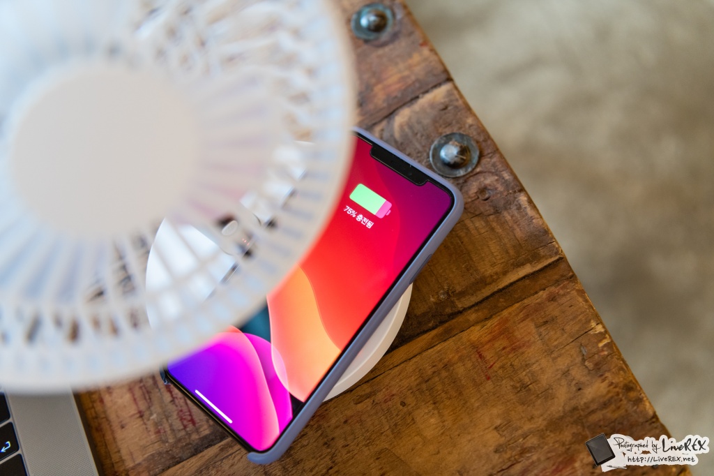결론부터 말하면, 나름 조용하면서 시원한 바람을 제공하는 건 기본이고 여기에 더해 최근 트렌드까지 반영을 하고 있어요. 스마트폰 등을 무선 충전하며 쓸 수 있습니다! ▼