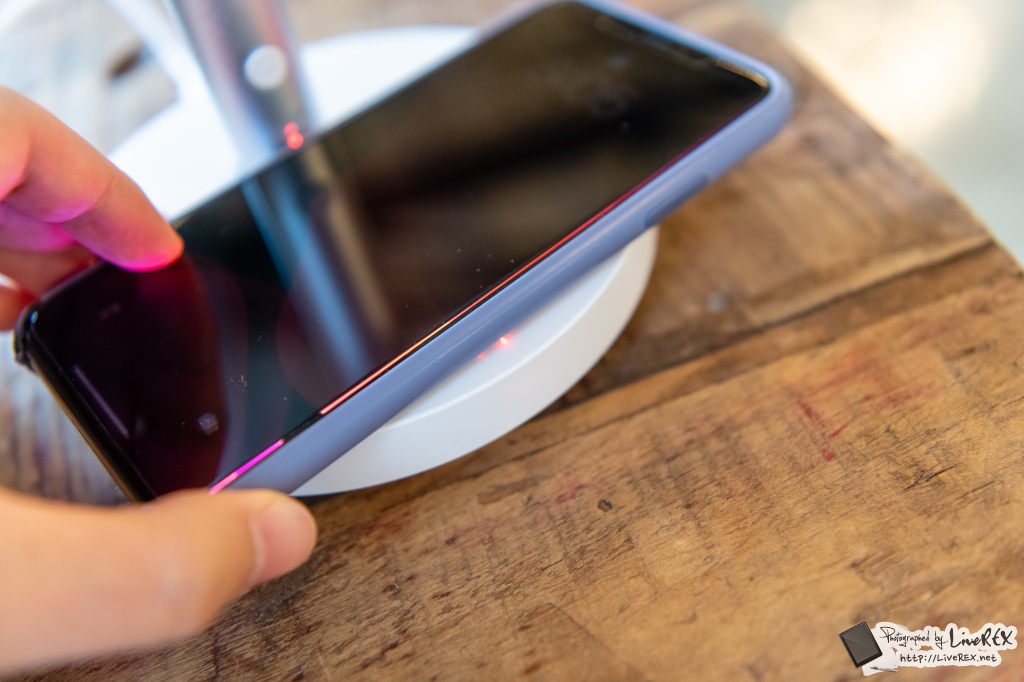 무선충전패드에 스마트폰 등을 올려두면 충전이 되는 걸 확인할 수가 있네요. 사용하는 기기의 제원에 따라 차이는 있겠지만, 5Wㆍ7.5Wㆍ10W 충전이 가능합니다. 즉, 고속충전을 지원하는 기기도 충분히 커버가 되는 걸 알 수 있네요.
