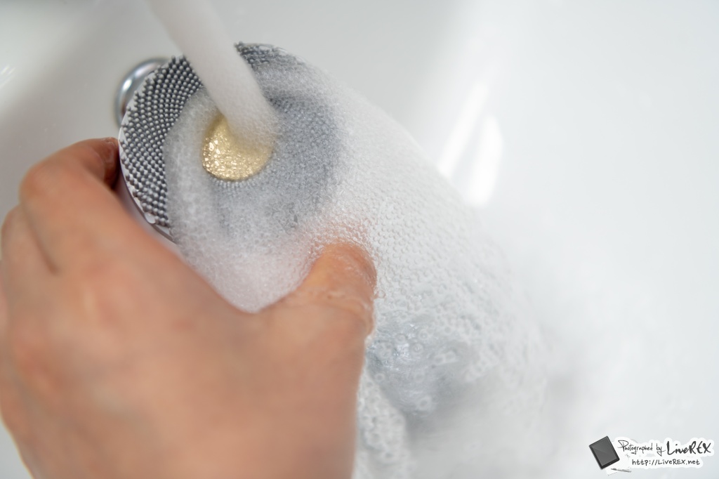 실제로 써 보니 일반 솔 브러쉬 기기 또는 일반 실리콘 기기보다 자극은 적지만 훨씬 세정력이 좋은 그런 느낌을 바로 받을 수 있었습니다.