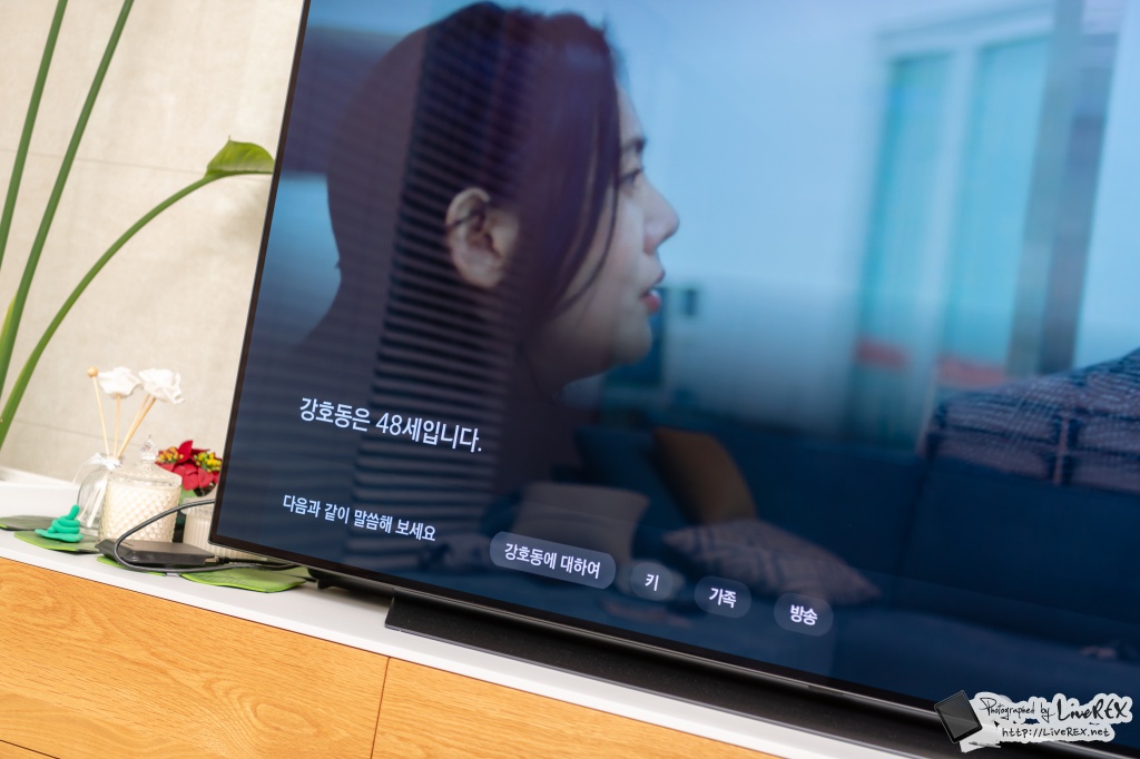 예를 들자면, “강호동이 몇 살이지?”라고 질문한 후, “키는?”라며 연이어 물어보면, 용케 강호동의 키를 알려줍니다. 참고로 인공지능 홈보드와 음성 명령 기능은 해외 직구 TV의 경우 지원되지 않는 기능이라고 합니다.