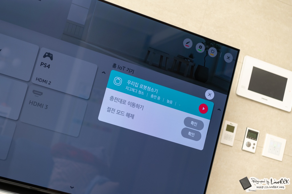 인공지능 홈보드는 특히 가전 연동 / 모니터링 / 제어 부분에서 유용함이 꽤 돋보이더군요. 저 같은 경우 LG로봇청소기와 연동해서 활용을 해 봤는데요. 문득 청소기를 돌리고 싶을 때 직접 찾아갈 필요 없이 TV 보던 자세 그대로 로봇청소기를 작동 할 수 있는 점이 무척 편했습니다.