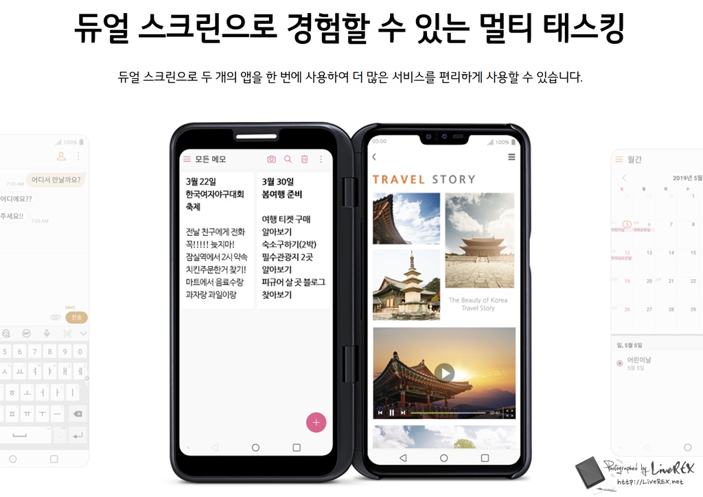 특히, 5G가 본격적으로 안정화가 되는 시점에는 LG V50 ThinQ의 듀얼 스크린이 양쪽 화면을 활용한 스트리밍 등 여러 측면에서 남다른 활용성을 가질 수 있을 것으로 예상되기도 합니다.