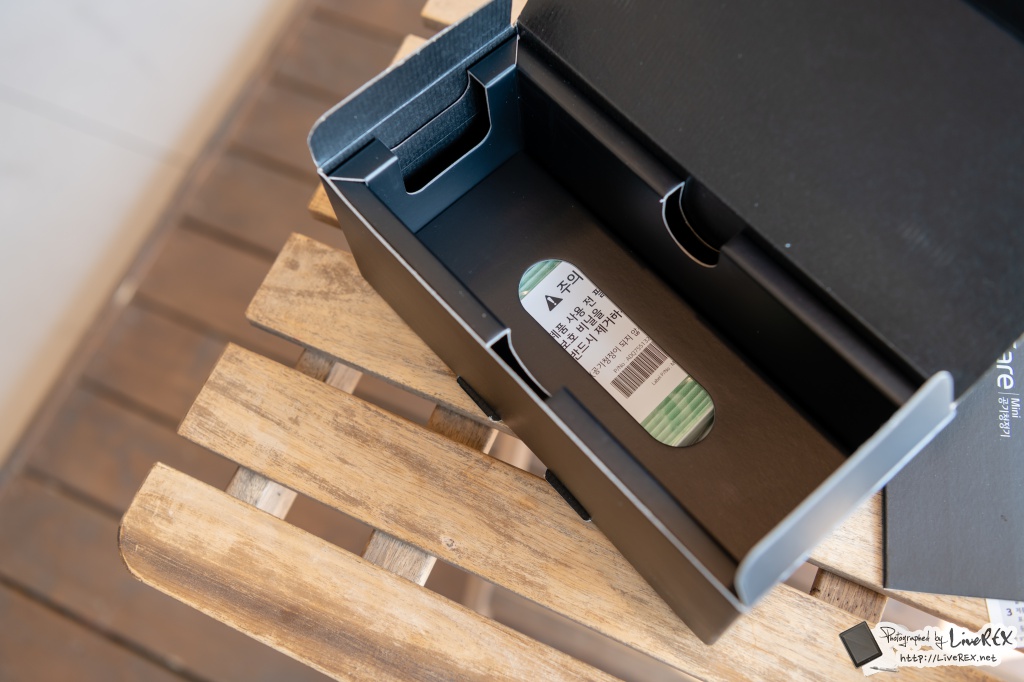 패키지 박스는 보시는 것처럼 블랙 바탕으로 되어 있는데요. 한눈에 보더라도 아담한 사이즈가 눈길을 끕니다. 박스 내부에는 미니 공기청정기 본체와 함께 필터 등이 포함되어 있는 걸 확인할 수 있습니다. ▼