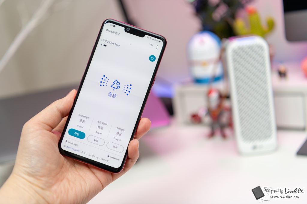 끝으로, 아래는 앱과 연동한 모습인데요. 이를 통해 조작은 기본이고 현재 공기질 상태, 필터 관리(교체주기 체크 등)가 가능합니다. 그리고 앱에서 자동 ON/OFF 기능을 설정하면 스마트폰과 제품의 거리에 따라 자동으로 연결이 되고 끊어집니다. 그러니 필히 앱과 조합해서 쓰시는 게 좋을 거 같네요. ▼