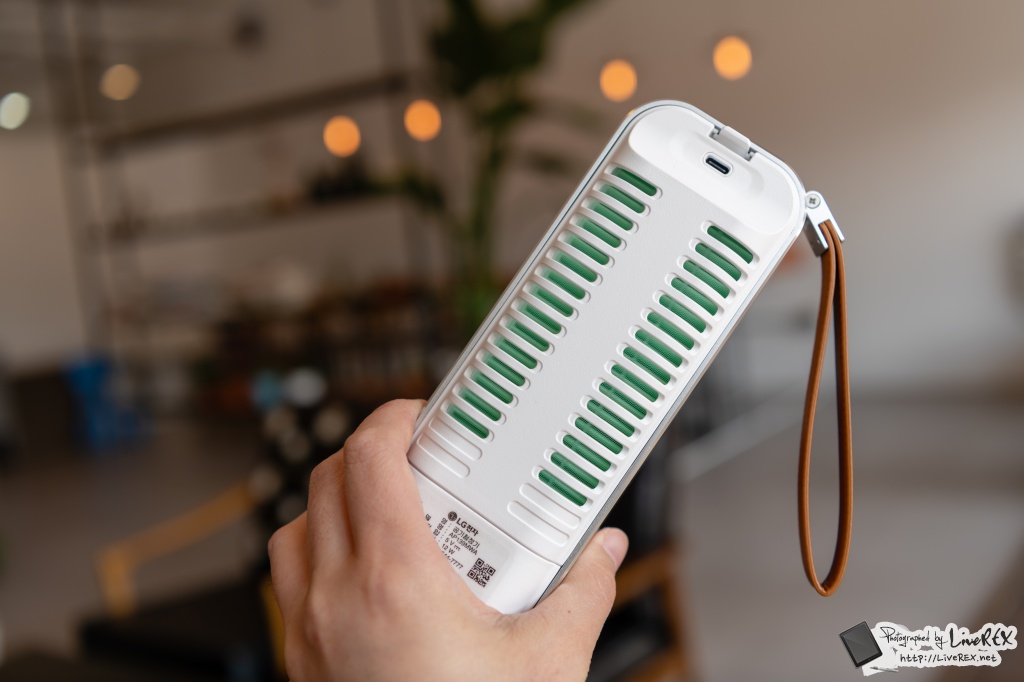 방은 물론이고 차량, 유모차 등 다양한 환경에서 쓸 수 있을 것 같은 모습입니다. 방금 이 언급에서 눈치챈 분들도 계시겠지만, 이 녀석은 충전을 해서 휴대하며 활용할 수 있는 특징이 있어요!