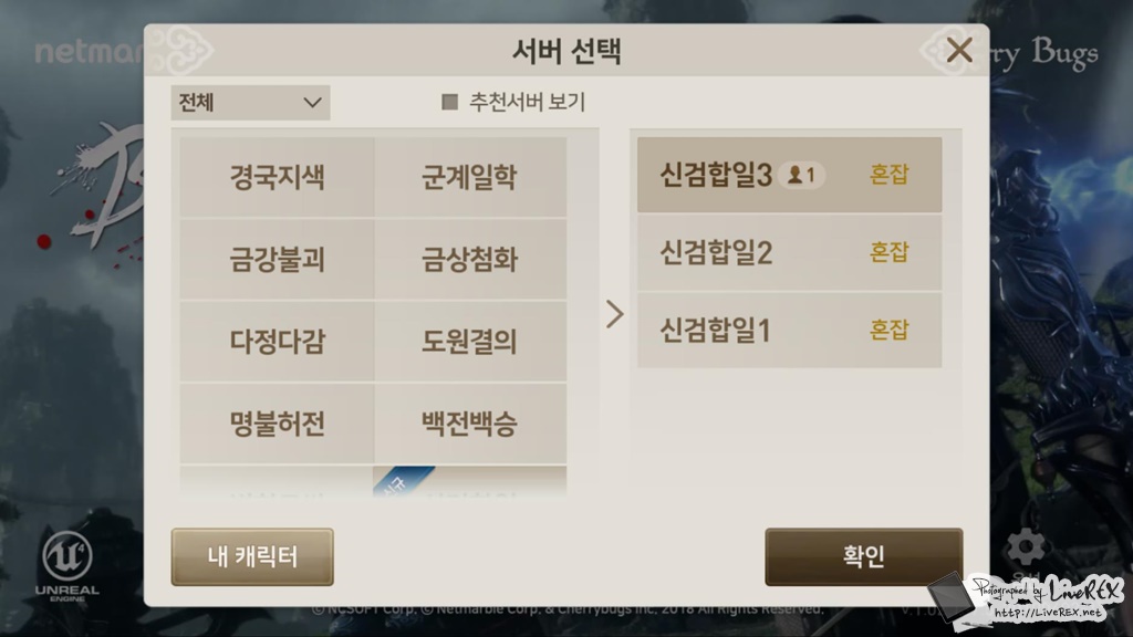 끝으로, 보시는 것처럼 신규서버 신검합일도 추가되었습니다.