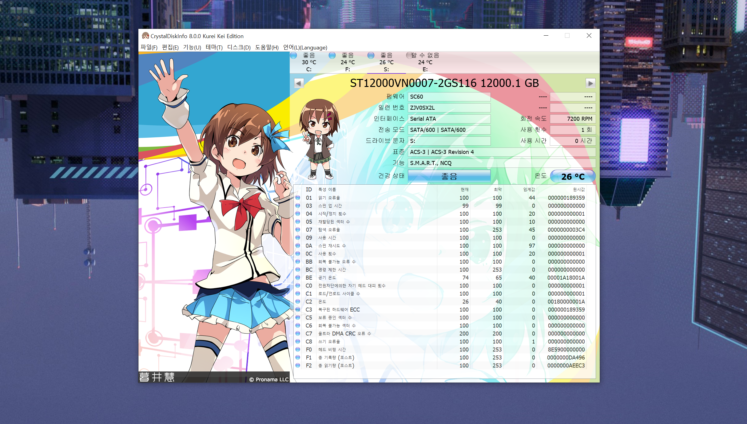 혹시나 모르시는 분들을 위해 첨언을 하자면, 처음 하드디스크를 연결하면 탐색기 등에서 그 디스크가 보이지 않을 겁니다. 디스크 관리에서 드라이브명 할당 등을 해줘야 하는데요. 12TB 용량은 다시 봐도 인상적이네요 ^^ ▼