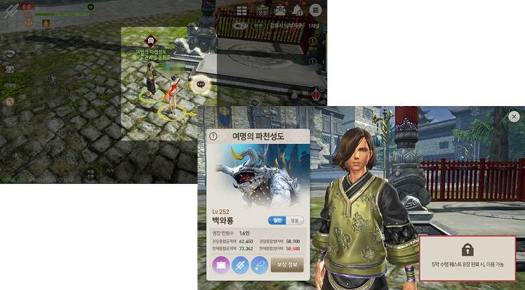 반면, 여명의 파천성도는 16인 레이드입니다. 다수의 인원이 참여하는 레이드답게 난이도가 상당하다고 알려져 있는데요. 5막 수행 퀘스트를 모두 수행한 유저 대상으로 진행이 되는 고레벨 콘텐츠로 평가를 받고 있기도 합니다.