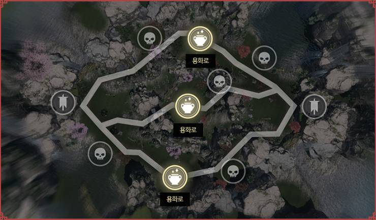 맵에 존재하는 총3개의 용화로를 점령 시, 초당 점령 점수를 획득할 수 있으며, 점령한 용화로가 많을 수록 더 많은 점수를 획득할 수 있습니다. · 상대 진영을 처치할 경우, 10점의 점수 획득이 가능합니다. (점수 차감은 없습니다.) · 용오름 계곡 시작 후, 마지막에 등장하는 보스 몬스터 처치 시 100점의 점수 획득이 가능합니다.